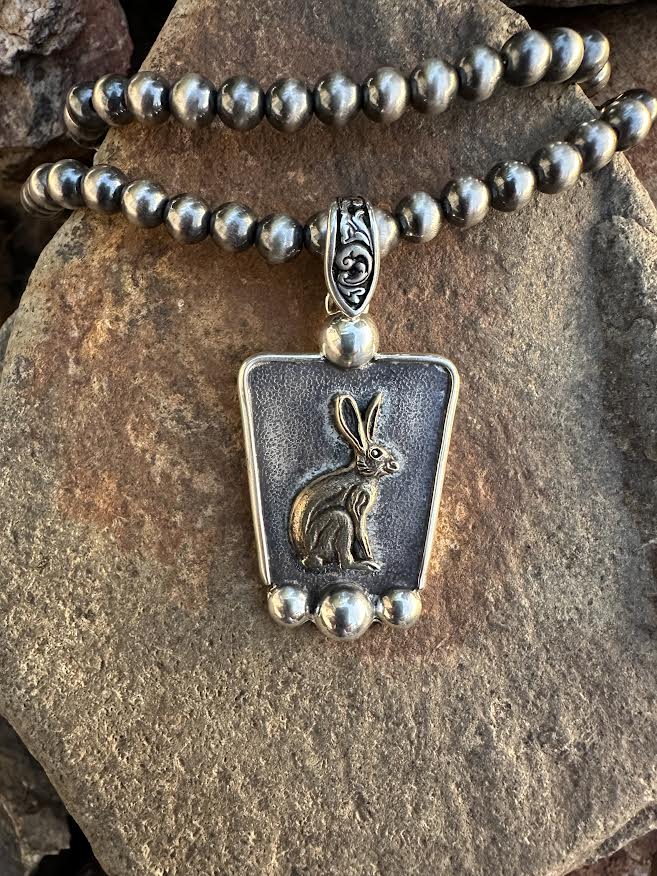 Sterling Silver pendant with Brass Jack Rabbit. Dimension 2" long by 1" wide